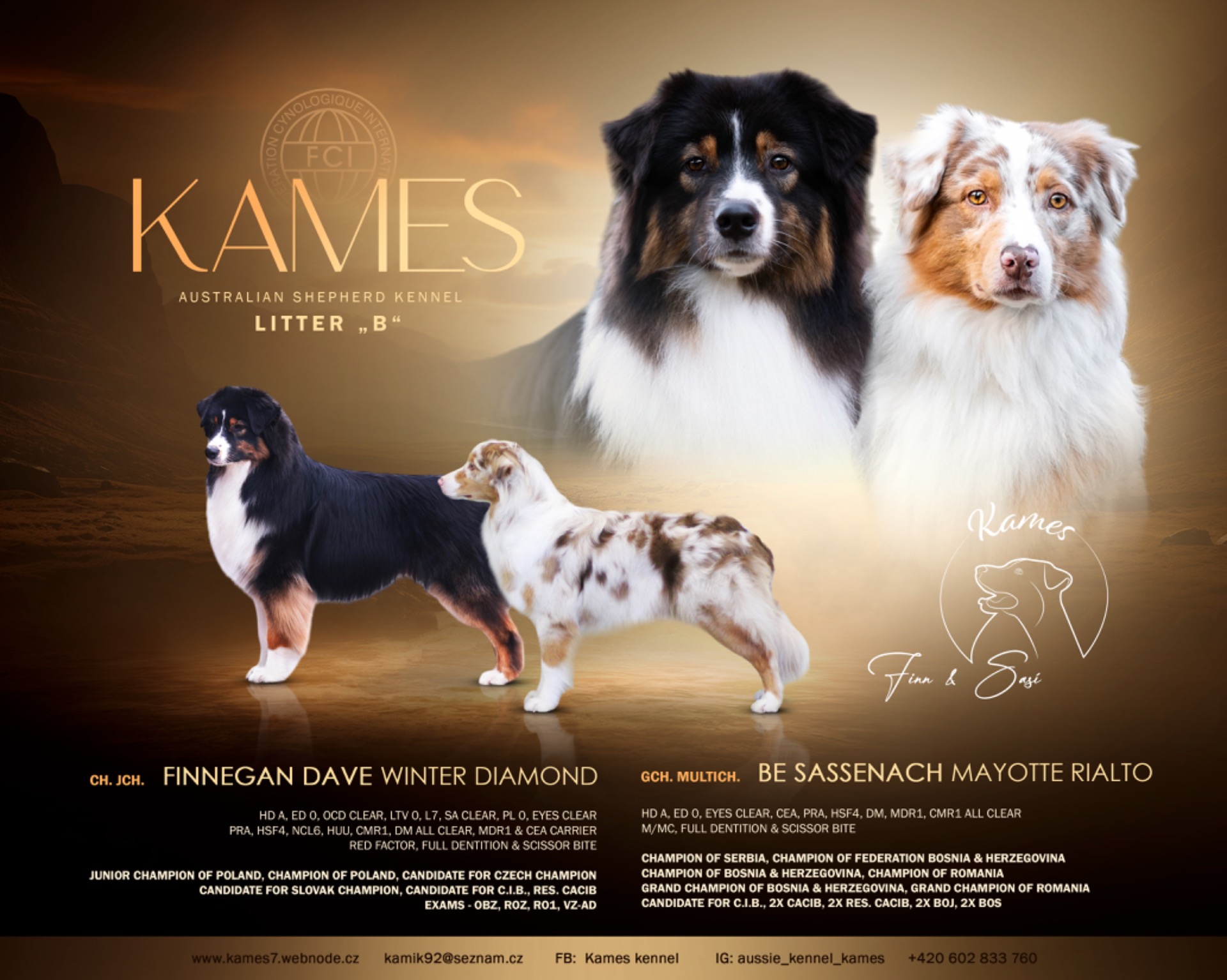 Máme štěňátka! Moc děkuji Andree Grossmannové a Mirce Sichrovské za využití Finna v našem chovatelském programu ❤️. Více informací o vrhu naleznete na stránce “ODCHOVY - VRH B”.